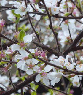 小ぶりの桜のようなこの花は我が家の「ユスラウメ」。