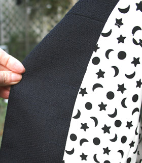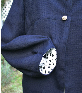 表地がダークなので、脱ぎ着する時に楽しくなるように裏地に凝りました。