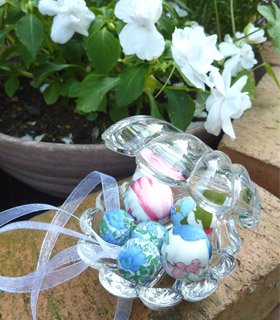 いくつも作ってパソコンの前、玄関などにおいて置きます。リバティプリントで作るととっても可愛いので小さな端切れも捨てずにとってあります。