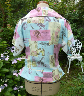 アロハはペラペラしたかんじが特徴なのでプリントのきれいなポリエステルで作ったら、これはちょっと失敗。