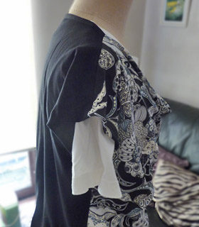 このように無地の後ろ身頃とあわせると、派手すぎる生地も、地味すぎる生地もぴたっと収まります。