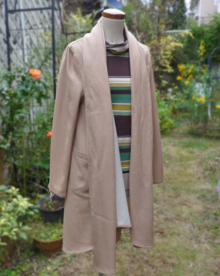 前回と同じデザインですが、今回は薄手の生地でふんわり軽いコートです。