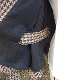 「千鳥格子」はよーく見ると、千鳥が口を開けて羽ばたいている姿なんです。 だから頭の方が上で、胴の方が下と、一応生地の上下が区別できます。グレンチェックの服をお店で見かけたら、上下が合っているかチェックしてみてね。