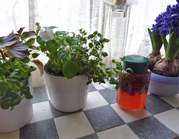 せっけんシャンプーを使っているので、リンスはお酢。それだけでは味気ないので、その時々で家にあるハーブを残り物整理のつもりで漬け込みます。