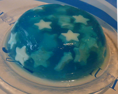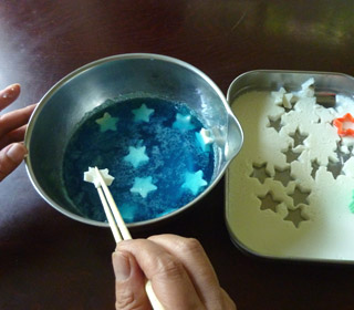 青色のゼリーを入れながら ☆を浮かせて