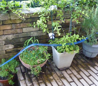 水遣りホースといって、小さな小さな穴があいているホース。