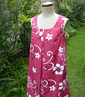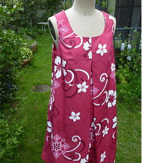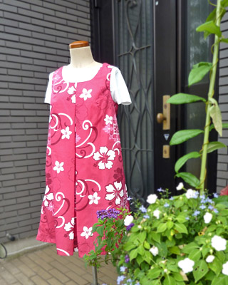 おそらく簡単なワンピースだと思いますが、クーラーもなかった時代のこと、超風通しの良いムームー風ワンピースだったのかな?