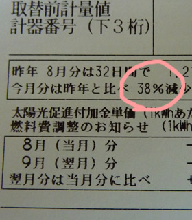昨年、テレビをプラズマから液晶に替え、春に門灯,玄関周りを LED に替えたら、6月の時点で電気代が昨年より15パーセント減っていました。