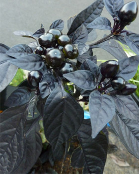 唐辛子の一種なんですが、茎も葉っぱも墨のように真っ黒!