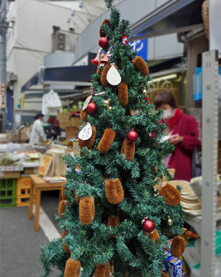 はい、金物やさんのクリスマスツリーです。築地っぽいでしょ。