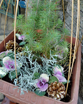 花で少しでも明るく、と花を置いても、パンジーもジュリアンも買った時の花が終わったらそれっきり、春まで花は咲きません。