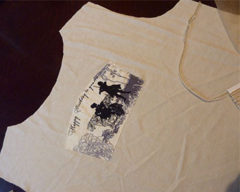 結局あれこれ考えて、シルエットを1つ、Tシャツの胸にアップリケすることにしました。