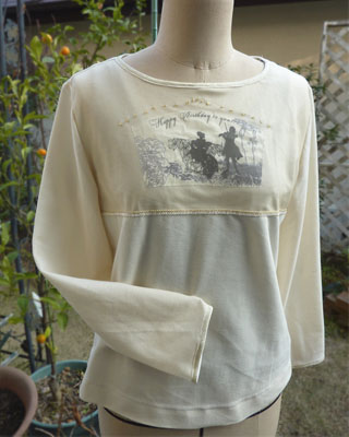 好きな部分を切り抜いて、Tシャツの前身ごろに縫い付けます。