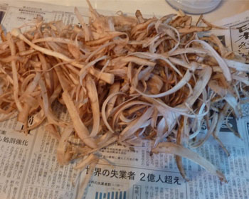 泥つきゴボウを買ったら2本パックで、1本を煮物に、余った1本は今話題の「ゴボウ茶」にしました。