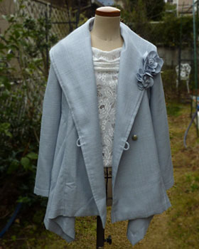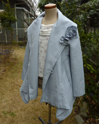 デザインは昨秋にも作ったものと同じ、ふんわり衿とイレギュラーの裾が特徴の、本当にオシャレなジャケットコートです。
