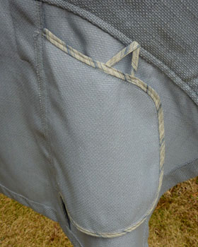 袖ぐりと、ポケットは丁寧にテープで巻いたので、ほつれの心配はこれで安心です。