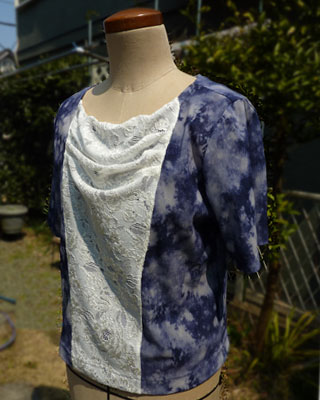こちらはつるり、さらりとした、高級感のあるプリントポリエステルに、コットンライクなレースです。