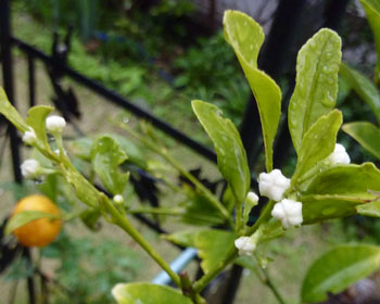 和名(四季橘)のとおり、1年中咲いたり実がなったりでホントにオリコウな木です。