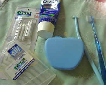 マウスピースです。(真ん中のケースが夫のマウスピース。先生のご指導どおりのグッズを駆使して磨くのもだいぶ慣れましたが、時間がかかりマス。)