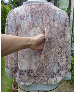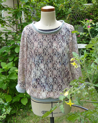 内に着る色で模様の見え具合がまったく変わるのがレースの面白いところ。