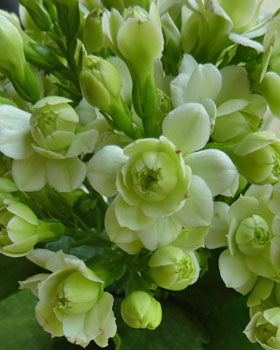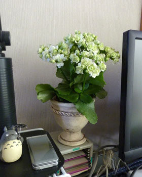 グリーンかかった見たこともないような不思議な花びらでしょ?、カランコエの新作なんですって。