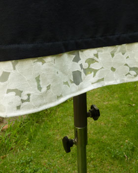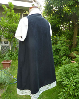 同じくハーフリネンの白い衿と、裾は透ける花模様をあしらいました。
