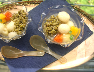 これをあずきと一緒に食べてもいいのですが今日は緑豆のあんにしてアジアンスィーツ風にしました。緑豆のお汁粉は息子たちが幼い頃に度々お世話になった薬寿堂の漢方医タン先生に教わったもの。
