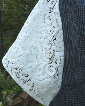 涼しげなガラスの花ボタンにレースの袖。