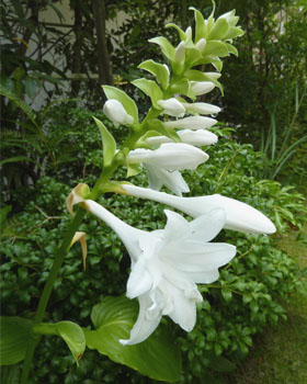 暑い季節には白やブルー系の花が涼しげでいいかな、って