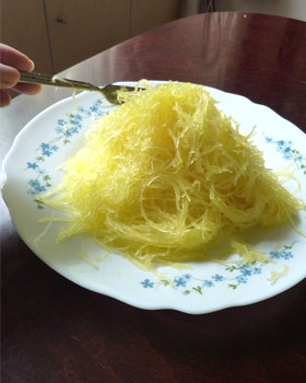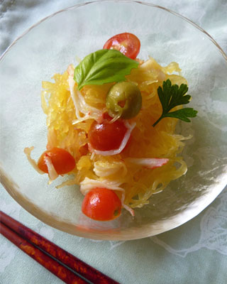 以前、アメリカの料理番組では「スパゲッティカボチャ」と紹介されてました。