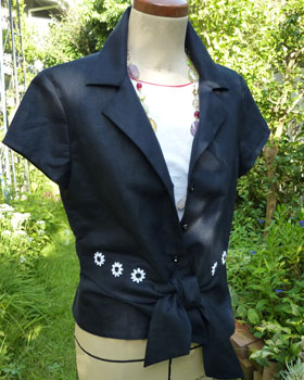 黒に近いネイビーで、麻独特のパリッ、くたっとしていて高級感があります。
