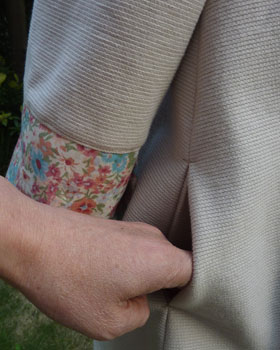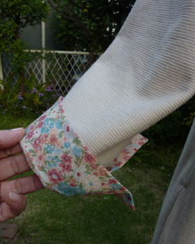 同じコットンでカフスを作りました。伸ばしても折り返しても素敵。