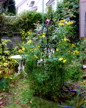 生育旺盛なので、夏の間はなんども切り戻しをしますが、ふと思いついてこの秋は切らずにそのままにしておきました。