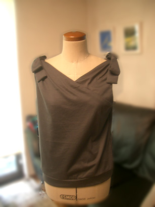 でもこのイラストの型は1960年代で懐かしいし最近も多くみる型で違和感なく着れそうなので作ってみることにしました。今風に布帛ではなくニット地で、ファスナーをなくしかぶりのカットソーにしました。