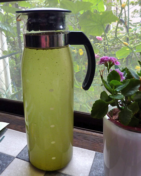 毎回ポットをよくゆすってまんべんなく緑色にしてからコップに注ぎます。