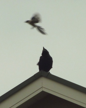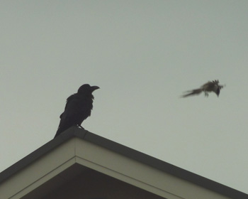 あはは、カラスとオナガの「仁義なき戦い」