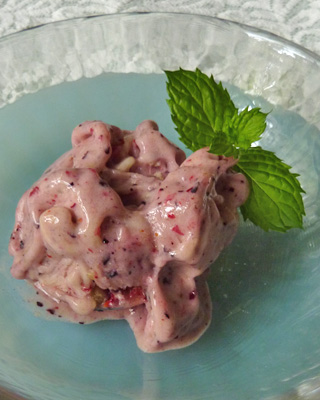フードプロセッサーでほぼクリームにして、途中から別の果物を入れるとマーブルになります。チト失敗 (*^^)v