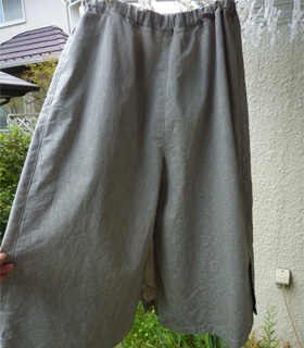 家事をするのにしゃがんだり、かがんだり大股で動いたりするのはキュロットが便利。特に夏には風が入り易くてパンツより涼しいですね。
