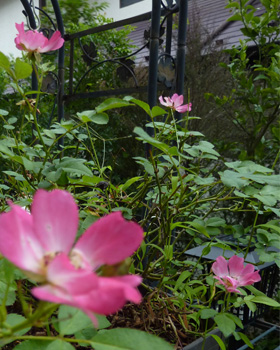 今、うちの庭に咲いているバラはこれだけ。 まさに息絶え絶えの「夏の名残のバラ」ですが、このドリフトローズは四季咲きなので、うんと肥料をやって花本番に頑張ってもらいましょう。
