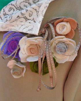 バラのコサージュは暑い時期から少しずつ作り貯めていたのでしょうから、手作業の温もりも伝わります。