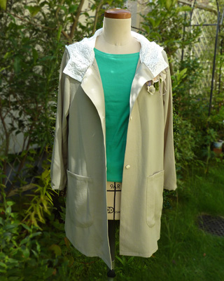初夏に作って評判の良かったコート。同じデザインでカーキ色のものを作りました。