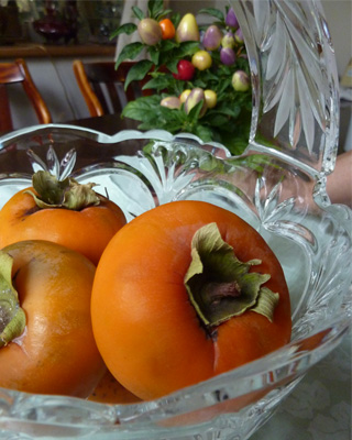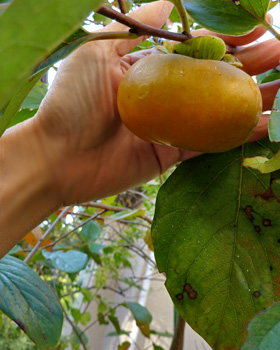 初夏のイチゴ等は人差し指&親指で口元に入れて初収穫の喜びを味わいますが、秋にはずっしりと掌に響く柿の実に包丁を入れるのも、皮と実の色あいを鑑賞できて、うきうきするものです。