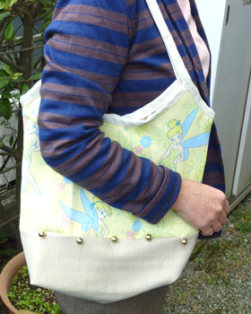 肩に掛けると脇がぴたりと収まり、流し目の Tinker Bell と目が合っちゃう。