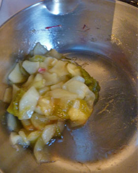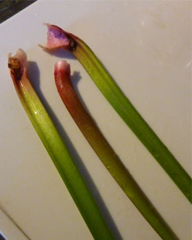 無骨なセロリのようなフキのような茎ですが、煮るとすぐにトロトロに。