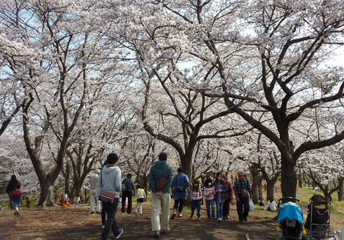 風なし快晴の近所の自然公園。満開のチェリーパノラマ。
