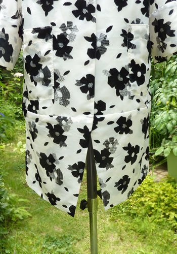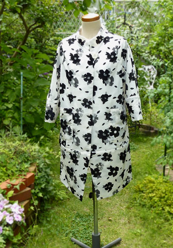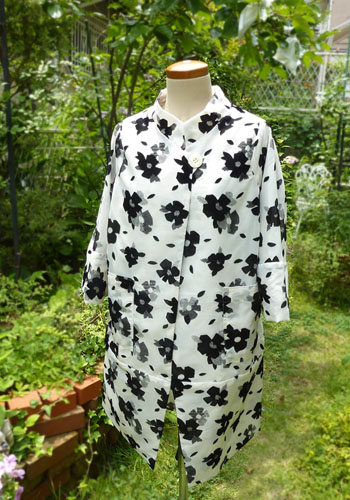 さて、花のコート、しわにならない軽い素材のポリエステルは重宝です。梅雨寒には、この一枚が強力な味方です。真夏日と真夏日の谷間の梅雨寒の日に、外出しなくてはならないという日にはうってつけです!お洒落な花柄は甘くなり過ぎないエレガントさです。