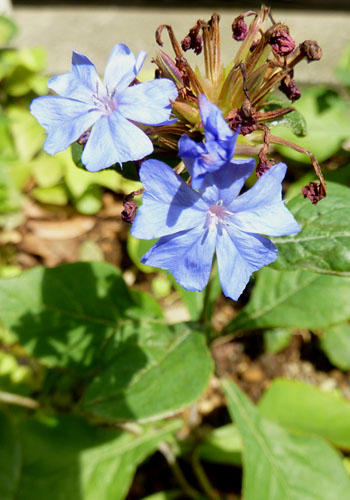夏中楽しんだチコリブルー、咲き始めたメドーセージやデザートスカイの青い花々。