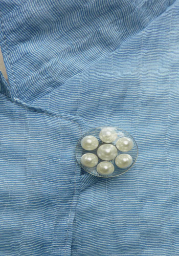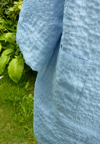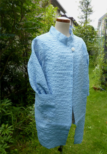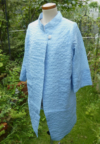 素材はサッカー織のシルク。色は今日の空の色 September Blue、ぴったりでしょ?