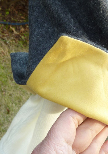カフスを折り返すと現れる柔らかな黄色はスエード風のポリエステルです。