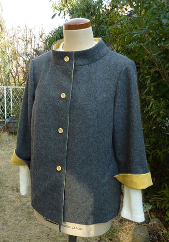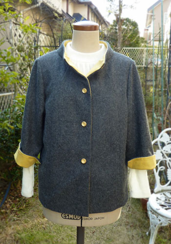 最近よく作るパターンで早春のジャケットを作りました。